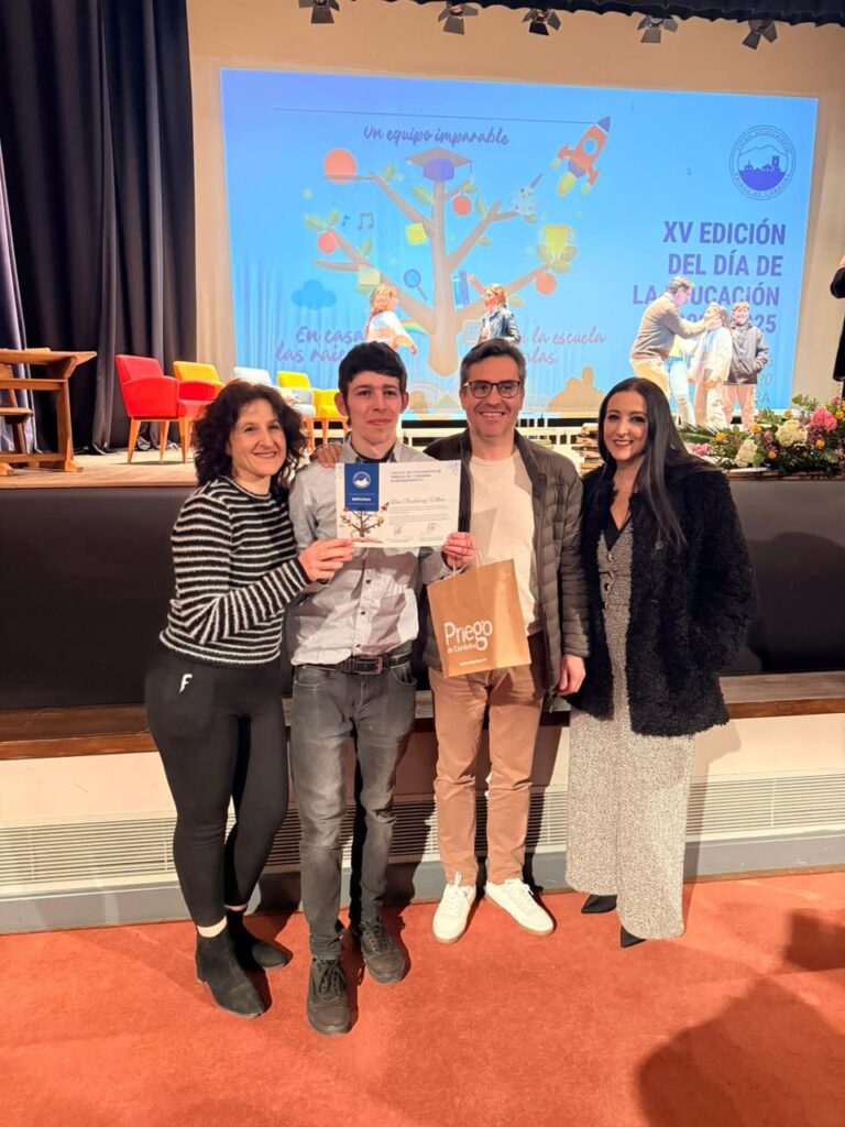 El pasado viernes 20 de febrero se celebró en el teatro Victoria de Priego de Córdoba la XV edición del Día de la Educación. En la misma se le otorgó una mención por su excelente trayectoria educativa a Carlos Comino Cáliz y Ainhoa Pérez Campillo, alumnado de nuestro centro educativo. Desde aquí nuestra más sincera enhorabuena a estos dos alumnos y a sus familias. Seguro que seguirán cumpliendo sueños en su nueva etapa educativa.